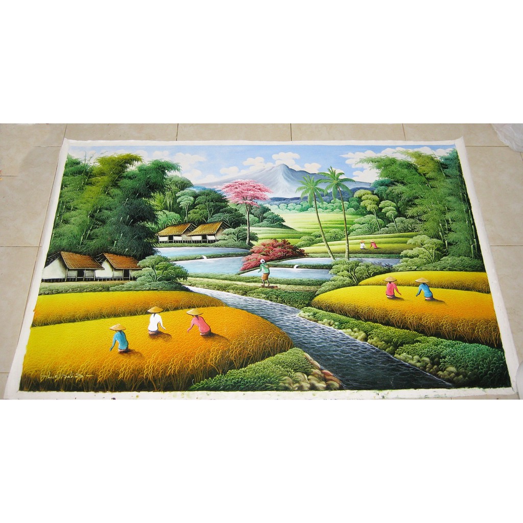 Beli lukisan pemandangan sawah padi fengshui kelimpahan rejeki kode:g3 terbaru di shopee.
